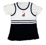 She will be the best looking Cleveland Indians cheerleader around in this two piece cheerleader outfit by Nike. Team color cap sleeve pull over top with front stripes and Indians embroidery. Skirt is pleated with elastic waist and team color border trim. 60% cotton.